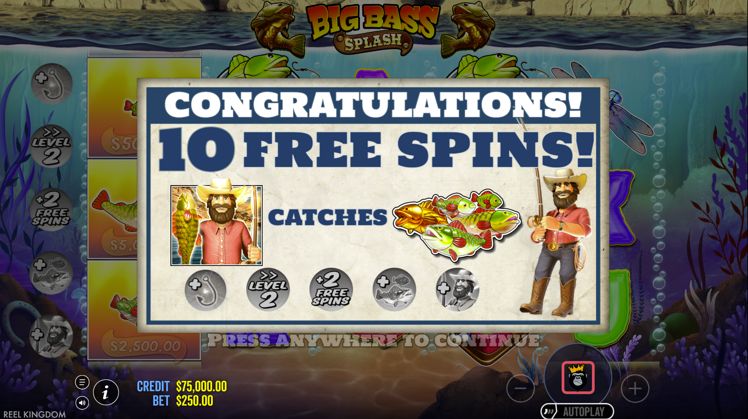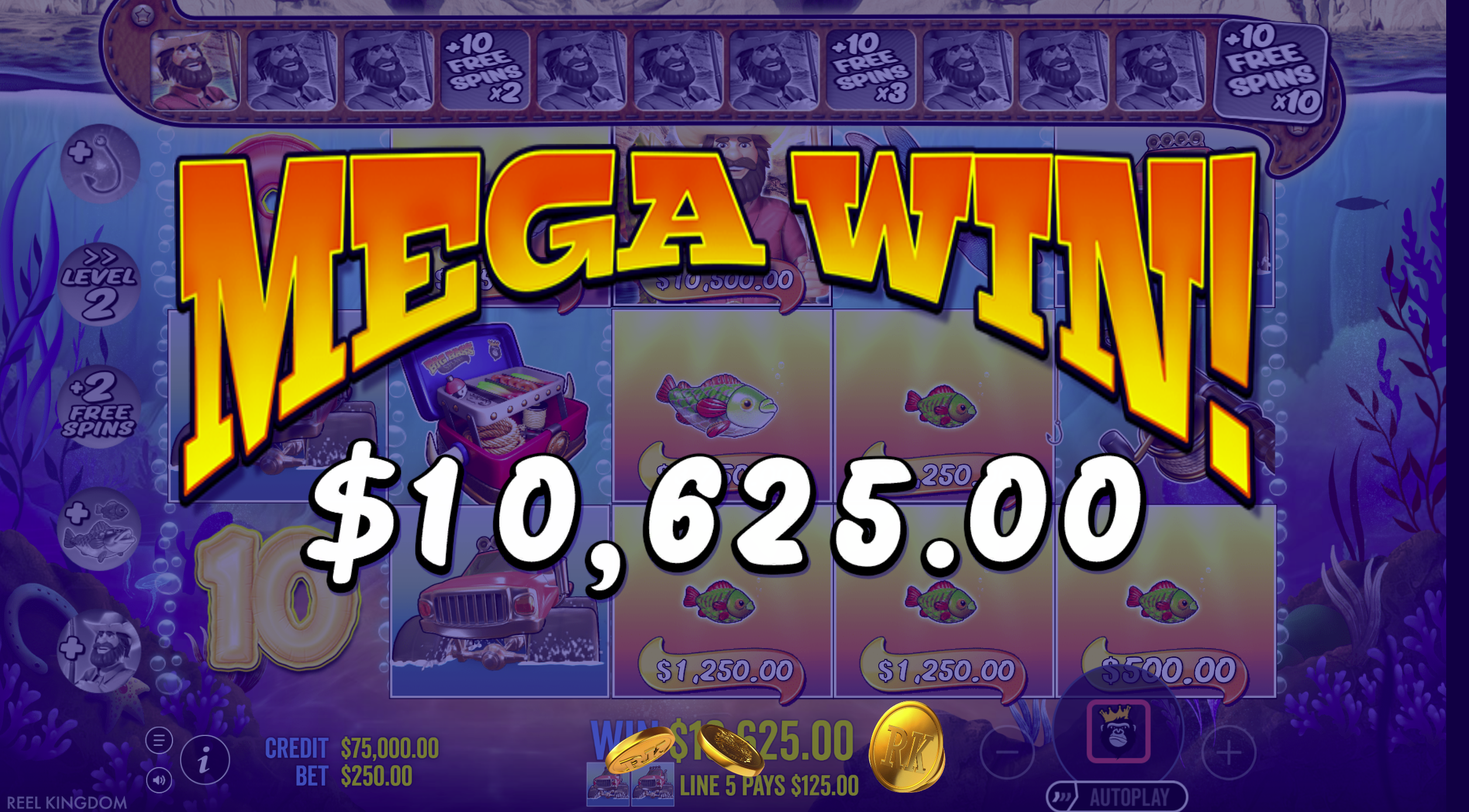 - Sticky Fisherman Wild: During free spins, Fisherman Wild stays on reel 5 for guaranteed collections.